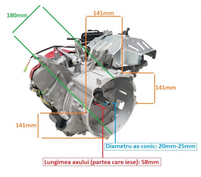 Двигател генератор (коничен вал) 13 KC (без резервоар) Характеристики: Двигател: OHV, 4-тактов, 1 цилиндър, въздушно охлаждане, хоризонтален вал (коничен) Модел:...